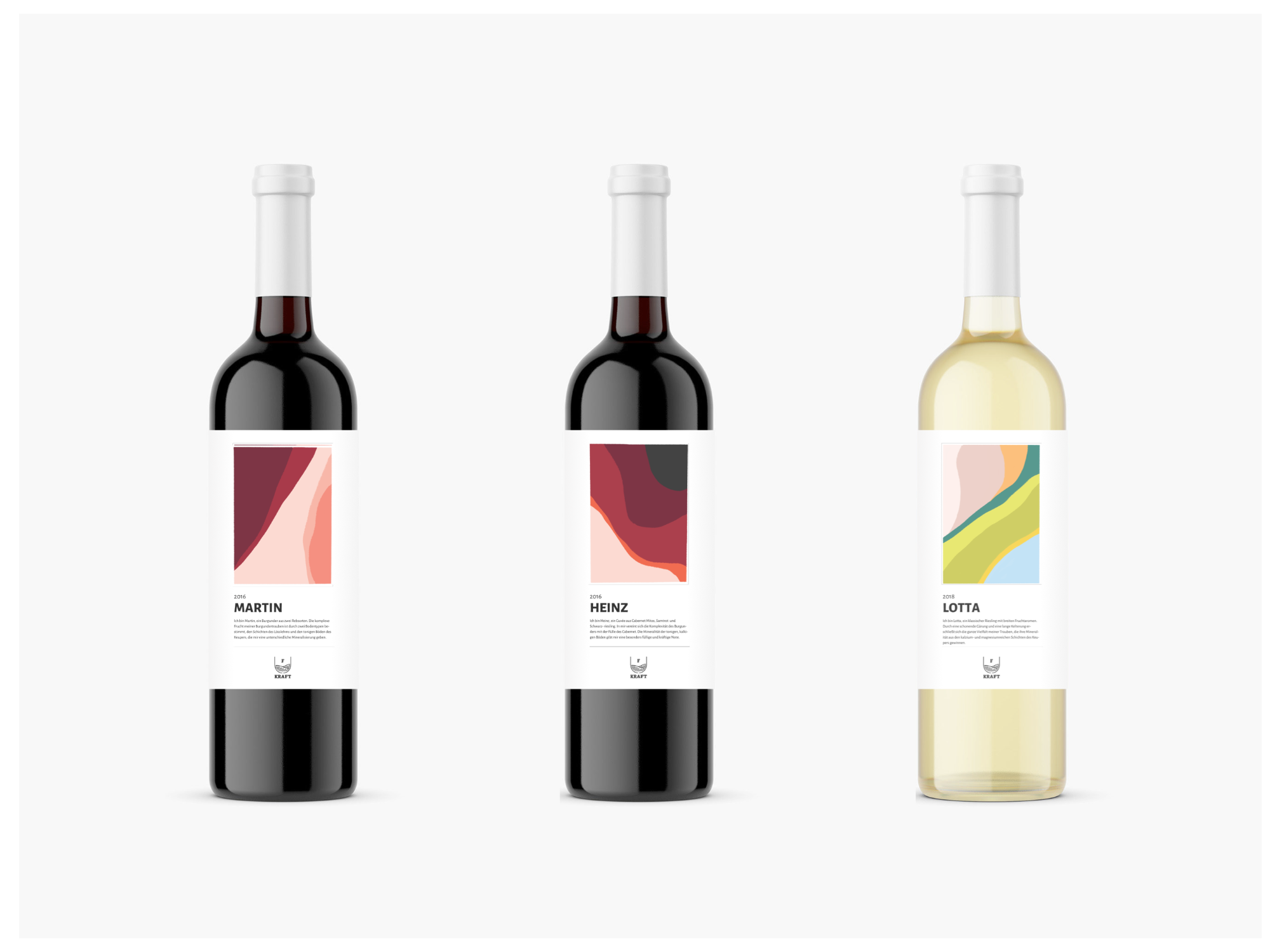 My wife and I did a wine testing a couple of years ago that I found very fascinating. It was maybe a little bit esoteric, about tasting colors but the idea of tasting colors stayed in my head and I pitched this, making the taste of the wine visible with one expressive image to Siggi Kraft. They loved the idea and I went on with it. What I did was a very explorational teasting of the different wines trying to figure out their specialness and simply painted it. The results were very intersting and they liked the idea of seeing this images and also thinking about color and taste of the different wines. This idea was made to stick and Siggie Kraft also wants to make winetasting events out of it.